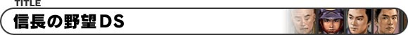 『信長の野望DS』は、織田信長をはじめ、激動の戦国時代を駆け抜けた群雄たちの生きざまを描く、歴史シミュレーションゲーム。戦闘規模によってルールが変わる3タイプの野戦や攻城戦など、プレイヤーの用兵戦術が問われる画期的なシステムに最新のグラフィックやニンテンドーDSならではの機能を搭載しました。