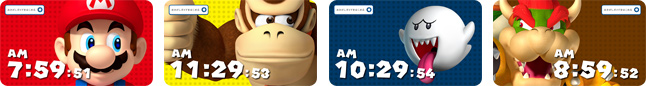 15分に一度、マリオシリーズのキャラクターが個性豊かに時刻をお知らせします。