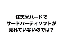 このように、任天堂プラットフォームでは任天堂の自社ソフトばっかりが売れるんだ、サードパーティのソフトメーカーさんのソフトが売れないんだという見方は、ワールドワイドの実績で見ますと、全く見当違いなものであることがおわかりいただけるのではないかと思います。