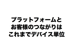 すなわち、任天堂とお客様のつながりは、これまでデバイス単位であったと言えます。プラットフォームごとに、お客様とのつながりがバラバラであるため、いくつかの課題がありました。