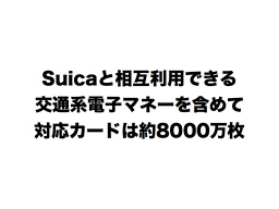 2014年3月末現在で、Suica電子マネー対応カードの発行枚数は、約4420万枚、相互利用できる交通系電子マネー対応カードの発行枚数は、合計で約8000万枚にもなります。