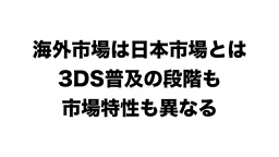 海外市場は、日本市場とはニンテンドー3DSの普及の段階も、市場特性も異なります。