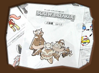 アタシの開発した高性能スコープ(通称デバカメラ)が、レッドリルのアジトに隠されていた極秘資料をとらえたわ!この書類は……なんと『スクリューブレイカー』のいちばん最初の企画書じゃないの!ムホホホ〜、レッドリルの連中ったら、最初のころはこんなアカ抜けないカンジだったのネ〜。これじゃ隠しておきたくもなるわネ〜。