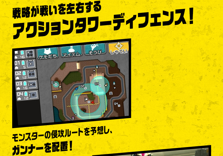 戦略が戦いを左右するアクションタワーディフェンス!モンスターの侵攻ルートを予想し、ガンナーを配置!