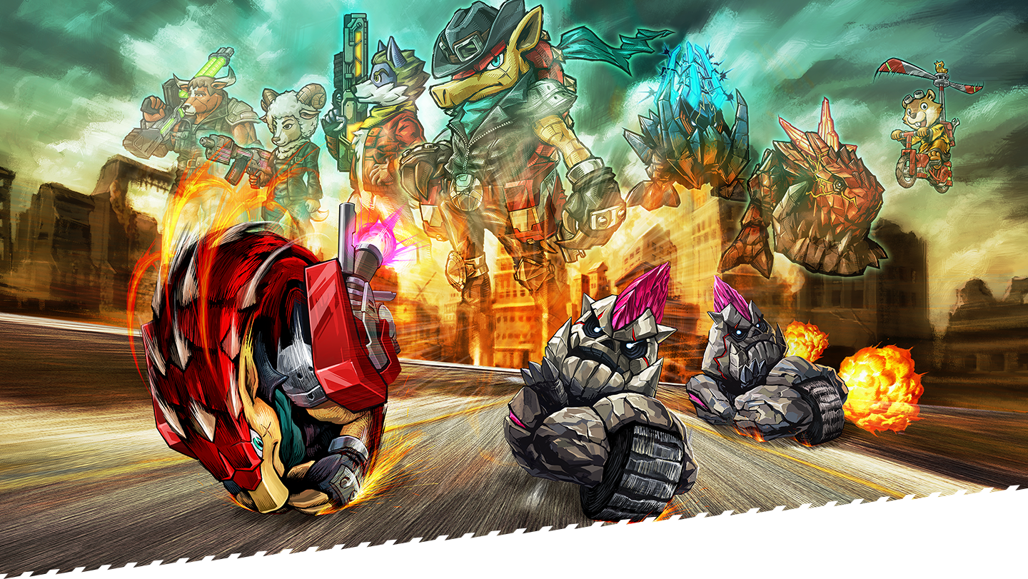 敵の数が少なくなると「バトルレース」へ! 走りながら敵を削って、コナゴナに打ち砕け!