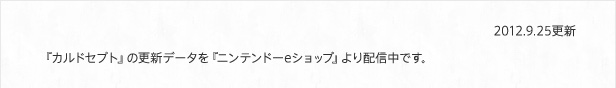 2012.9.25更新 『カルドセプト』の更新データを『ニンテンドーeショップ』より配信中です。