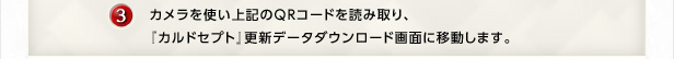 カメラを使い上記のQRコードを読み取り、『カルドセプト』更新データダウンロード画面に移動します。