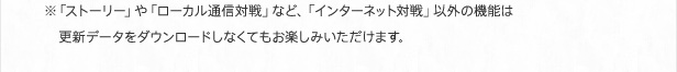 ※「ストーリー」や「ローカル通信対戦」など、「インターネット対戦」以外の機能は  更新データをダウンロードしなくてもお楽しみいただけます。