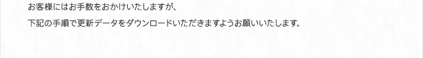 お客様にはお手数をおかけいたしますが、 下記の手順で更新データをダウンロードいただきますようお願いいたします。