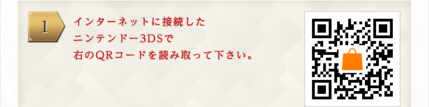 1 インターネットに接続した ニンテンドー3DSで右のQRコードを読み取って下さい。※インターネットの接続方法についてくわしくはこちら