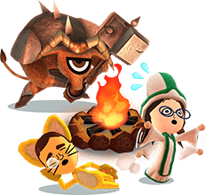 HPやMPが少なくなってピンチのMiiには、神の力「ふりかけ」をささーっとふりかけたり、神の力「安全地帯」で避難させたりして、戦いをサポートできます。