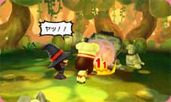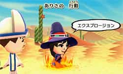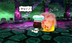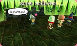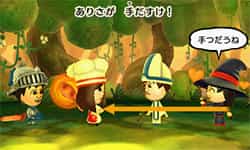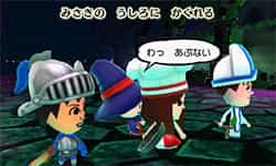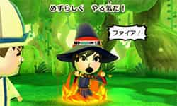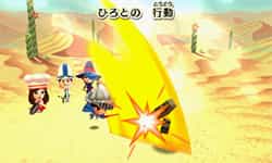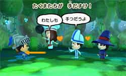 HPやMPが少なくなってピンチのMiiには、神の力「ふりかけ」をささーっとふりかけたり、神の力「安全地帯」で避難させさせたりして、戦いをサポートできます。