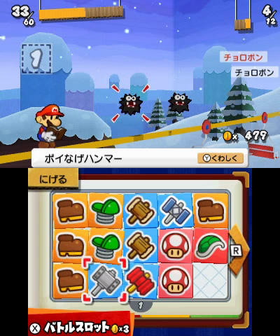 たたく……と思いきや大きなハンマーが降ってきてすべての敵を攻撃します。飛んでいる敵にも当たります。
