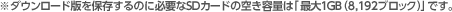 ※ダウンロード版を保存するのに必要なSDカードの空き容量は「最大1GB(8,192ブロック)」です。