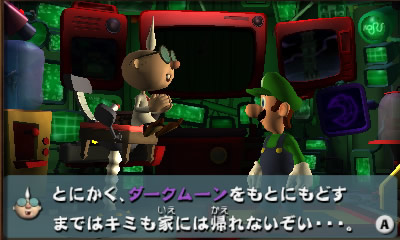 なんとかベースラボに逃げ込んだオヤ・マー博士は、なかば無理やりに(?)ルイージを呼び寄せて、事件の解決を託しました。