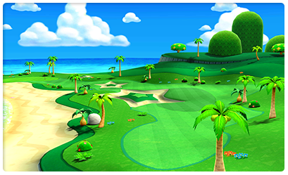 さわやかな風が吹き抜ける海沿いコース。 スリリングな海越えホールもたくさん。
