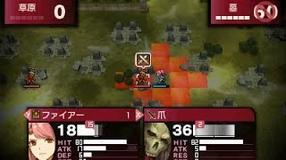 戦闘は自軍と敵軍のターンを交互に行います。自軍のターンではマス目状に区切られた戦場で仲間を移動させ、攻撃や仲間へのサポートを繰り広げます。各地点で敵軍を全滅させれば勝利です。