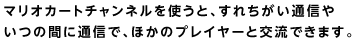 マリオカートチャンネルを使うと、すれちがい通信やいつの間に通信で、ほかのプレイヤーと交流できます。