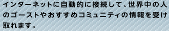 インターネットに自動的に接続して、世界中の人のゴーストやおすすめコミュニティの情報を受け取れます。