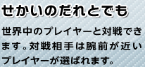 • せかいのだれとでも 世界中のプレイヤーと対戦できます。対戦相手は腕前が近いプレイヤーが選ばれます。