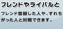 • フレンドやライバルと フレンド登録した人や、すれちがった人と対戦できます。