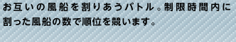 お互いの風船を割りあうバトル。制限時間内に割った風船の数で順位を競います。