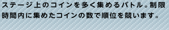ステージ上のコインを多く集めるバトル。制限時間内に集めたコインの数で順位を競います。