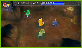 ダンジョンの中にはいろいろな敵ポケモンがいます。敵ポケモンは主人公を見つけると襲いかかってくるので、パートナーと協力して戦いに挑みます。