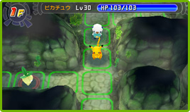 ダンジョンの中では、ターンごとに行動します。たとえば、主人公が1歩動くと、次にパートナーが1歩動き、次に敵ポケモンが1歩動く。このように各ポケモンが1回行動すると1ターン終了します。これを繰り返しながらダンジョンを進みます。