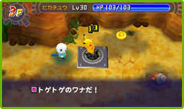 冒険を進めていると、主人公たちの行く手をはばむワナが出現することもあります。ワナを踏んでしまうと、ダメージを受けたり、どこかに飛ばされてしまいます。