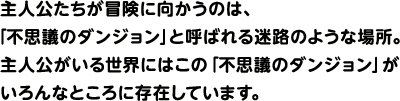 「不思議のダンジョン」の最大の特徴は入るたびにマップが変化すること。出現する敵はもちろん、落ちているどうぐやお宝の種類と場所も変わります。1度冒険したダンジョンでも、もう1度入れば変化しているので、何度でも挑戦できます。