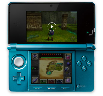 スライドパッドを動かすことでリンクがその方向に移動します。小さく動かすと歩き、大きく動かすと走ります。また、段差などに向かって走ると、自動的にジャンプします。気になる場所に足を運ぶことが、謎解きの第一歩です。