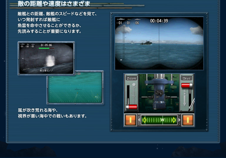 敵艦との距離、敵艦のスピードなどを見て、いつ発射すれば敵艦に魚雷を命中させることができるか、先読みすることが重要になります。