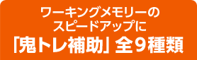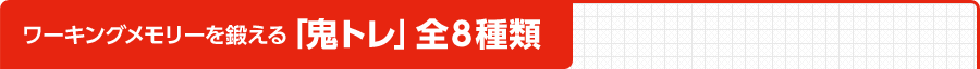 ワーキングメモリーを鍛える「鬼トレ」「鬼トレ補助」のほか、脳の老化防止が期待できる 「脳トレ」も収録しています。