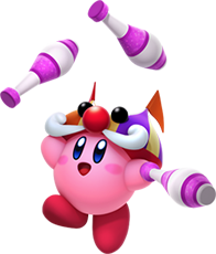 すいこんだものをはき出せば、敵をこうげきしたり、ブロックをこわしたりできる。すいこんだ敵をのみこむと、その能力をコピーすることも!