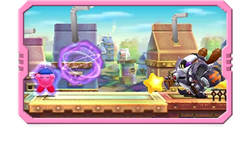 すいこんだものをはき出せば、敵をこうげきしたり、ブロックをこわしたりできる。すいこんだ敵をのみこむと、その能力をコピーすることも!
