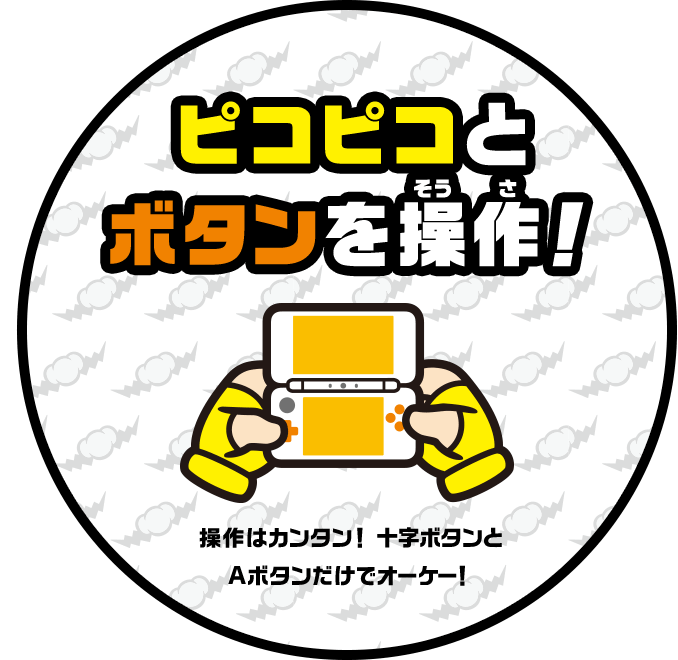 ピコピコとボタンを操作! 操作はカンタン! 十字ボタンとAボタンだけでオーケー!