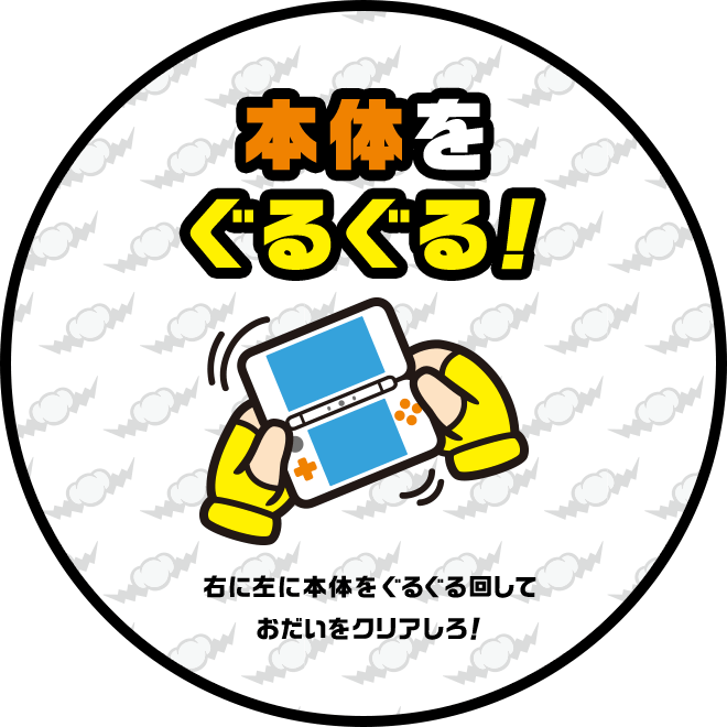 本体をぐるぐる! 右に左に本体をぐるぐる回しておだいをクリアしろ!
