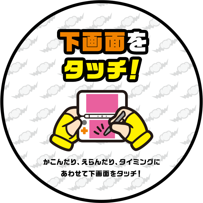 下画面をタッチ! かこんだり、えらんだり、タイミングにあわせて下画面をタッチ!