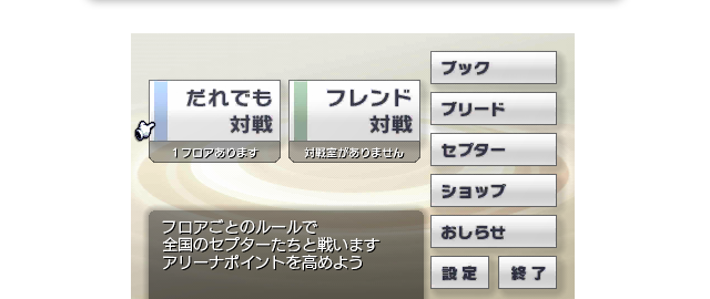 だれでも対戦 全国のセプターたちと戦います。実力が近い人同士で対戦が組まれます。