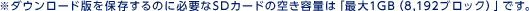 ※ダウンロード版を保存するのに必要なSDカードの空き容量は「最大1GB(8,192ブロック)」です。