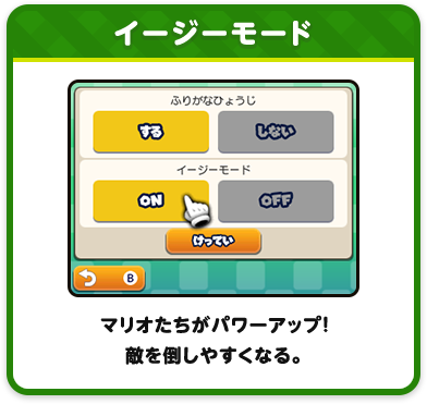 イージーモード / マリオたちがパワーアップ!敵を倒しやすくなる。