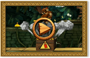 ドンキーコングのさまざまなアクションを使って、しかけを解いたり、敵を倒したりしながらゴールを目指します。ディディーコングは背中に乗ってドンキーコングをサポート!ダメージを受けるとはなれてしまいます。