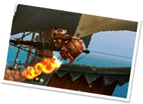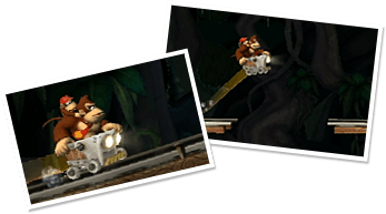 コース中に登場するトロッコやサイのランビ、ロケットバレル。それぞれに特徴をもった乗りものをうまく操作して進んでいきます。
