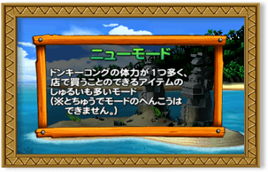 Wii版『ドンキーコング リターンズ』にはなかった「ニューモード」が登場。冒険を手助けするしくみが追加され、より遊びやすくなりました。Wii版と同じルール・設定で遊べる「オリジナルモード」も搭載しています。