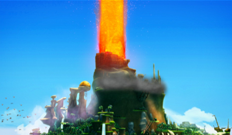 • はあ?、ここらじゃゆっくり昼寝もできんのか?急に火山が噴火したと思うたら、楽器のような形のやつらがわんさか出てきて騒いでおるのう。やつらの出す騒音にはもう、うんざりじゃ!