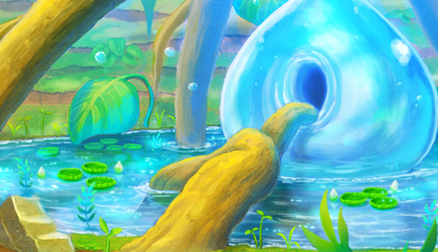 オアシスには、入り口に位置する噴水広場や、水の精霊イスナがいる精霊のほこら、主人公の自宅、“ハナミセ”を建てることができる大通りや、栽培園などがあります。
