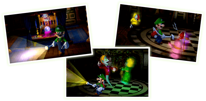 • 3D映像で、臨場感あふれるやしきを探索! 3D映像は、NEWニンテンドー3DS・Newニンテンドー3DS LL・ニンテンドー3DS・ニンテンドー3DS LLでお楽しみいただけます。
