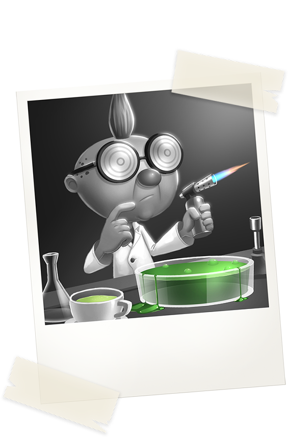 “グーイージ”くんにスペシャルな能力を与えることに成功したわしは、“グーイージ”くんをさらにパーフェクトな存在にするため、弱点の改善を試みる研究を始めた。 弱点とはすなわち、「水に溶ける」「炎で溶ける」という点じゃ。