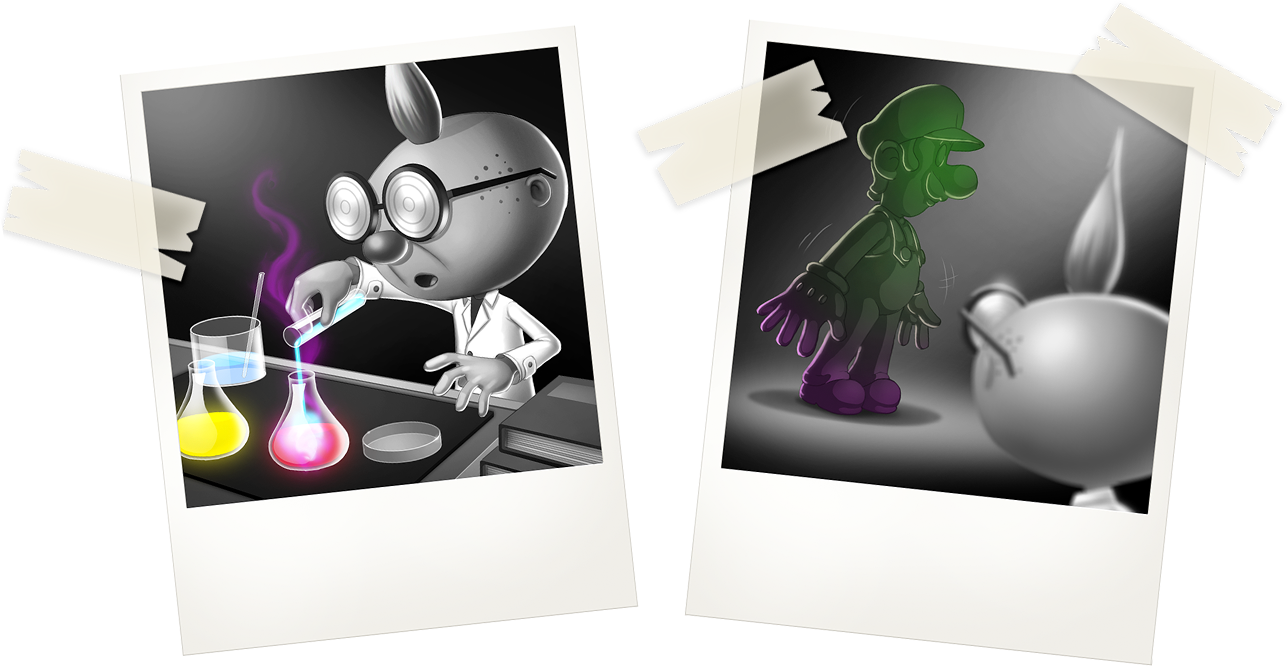 過去の世界のあの屋敷に生息しておった様々なオバケを集めることに成功したわし。“グーイージ”くんに「人にはない特殊な能力」を与えるため、さっそく研究を始めることにしたのじゃ。